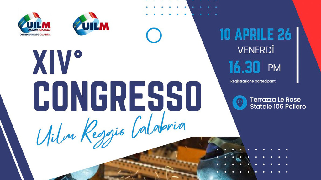 Si terrà venerdì 10 aprile alle ore 16.30, presso Terrazza Le Rose, il XIV Congresso UILM Reggio Calabria, appuntamento dedicato al confronto sui temi del lavoro, della tutela dei diritti e dello sviluppo territoriale, dal titolo “Territorio, lavoro, tutele – La forza dei metalmeccanici”.