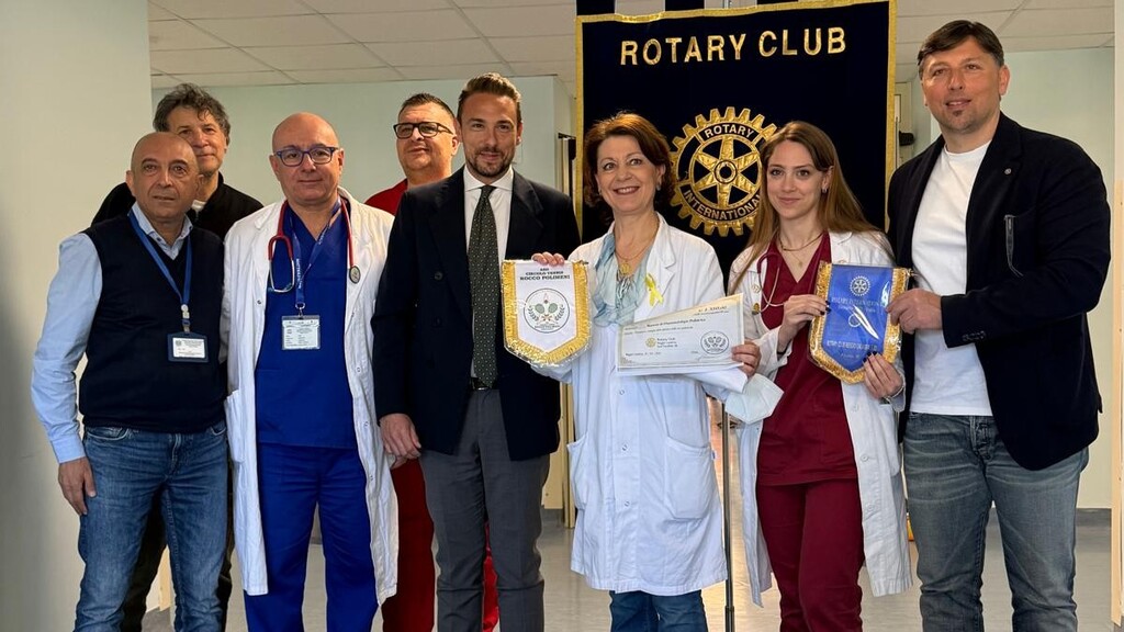 Questa mattina, presso la U.O.C. di Oncoematologia Pediatrica, i rappresentanti del Circolo Tennis “Rocco Polimeni” e il Rotary Club Reggio Calabria Sud – Parallelo 38 hanno consegnato alla dr.ssa Rosalba Mandaglio, responsabile del reparto, il ricavato del progetto benefico “Fai anche tu un match point per la vita”, un torneo di tennis solidale svoltosi dal 9 al 12 aprile 2026, organizzato con il patrocinio del G.O.M di Reggio Calabria.