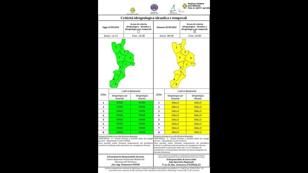 La Protezione Civile della Regione monitorerà la situazione, insieme al Centro Funzionale Multirischi di Arpacal, e attiverà le misure di intervento qualora fosse necessario.