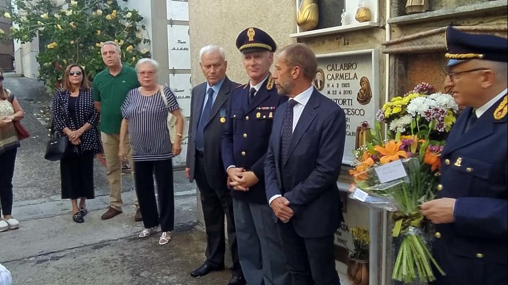 Durante la cerimonia, alla quale hanno partecipato i familiari ed una rappresentanza del personale della Polizia di Stato, è stato deposto un omaggio floreale presso la cappella di famiglia del Brigadiere.