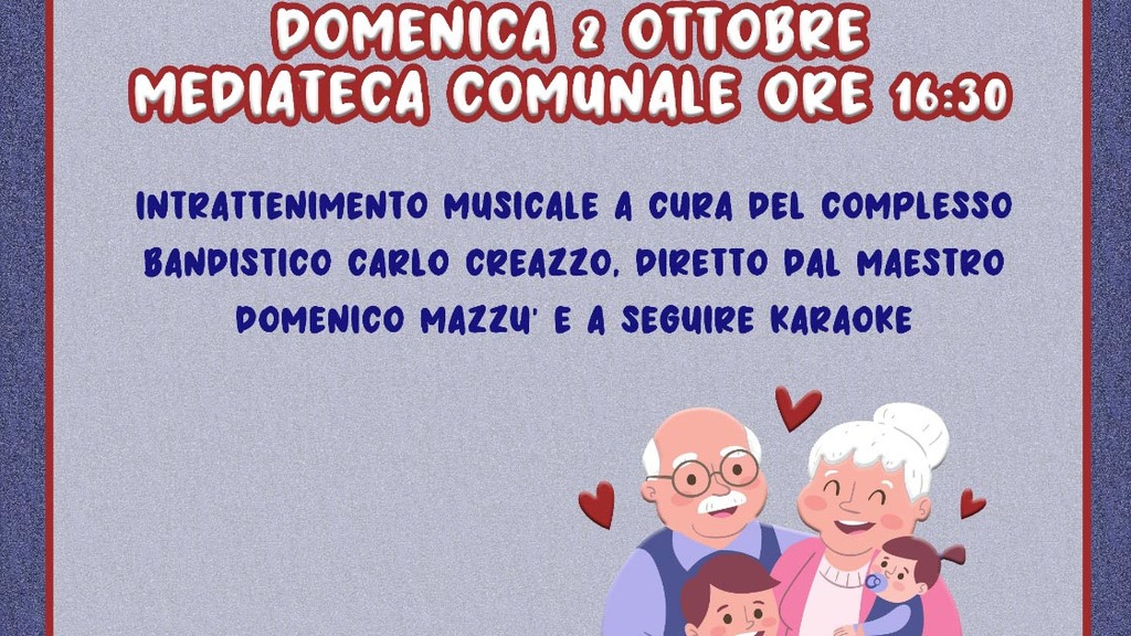 La festa avrà inizio alle 16:30 di Domenica 2 ottobre presso la Mediateca comunale.