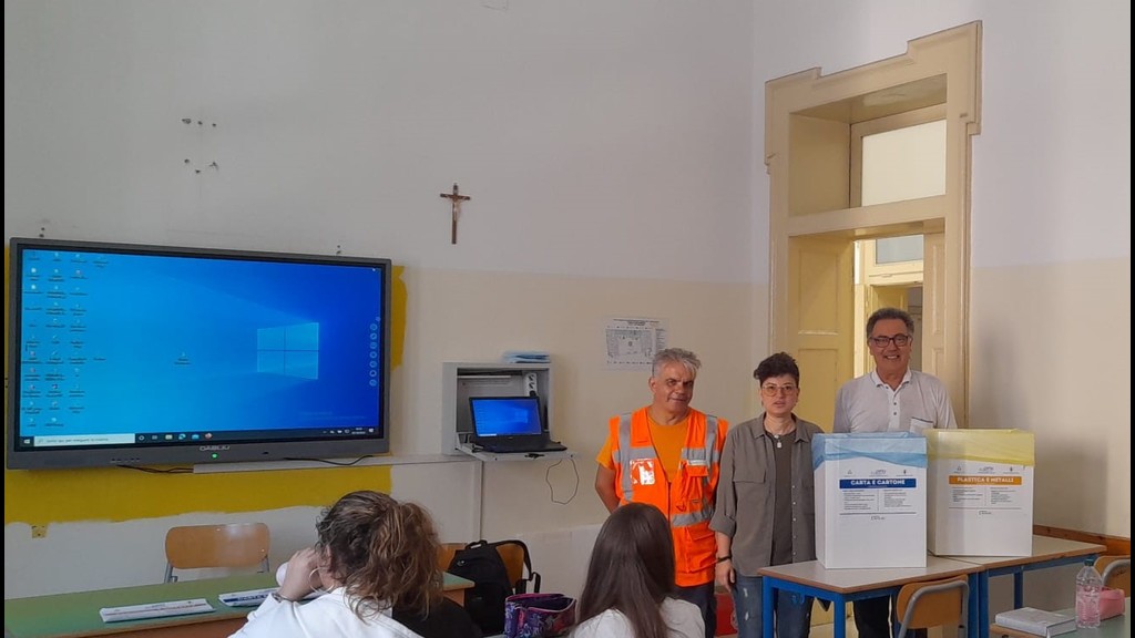 Nella mattina del 5 ottobre, con la consegna dei contenitori, da parte dei responsabili di Teknoservice dott.ssa Melito e Sig. Ripepi, è cominciata la fase applicativa del progetto di Educazione Ambientale organizzato per l’anno scolastico 2022 – 2023 dall’ITE Piria di Reggio Calabria, diretto dalla prof.ssa Anna Rita Galletta. Il progetto, concepito all’interno del Dipartimento di Scienze e Geografia, ed inserito nel PTOF per l’ampliamento dell’offerta formativa, vede come responsabile il prof. Giuseppe Cantarella. Questo progetto è rivolto alle classi prime della sede centrale e vuole costituire un laboratorio di ricerca, di informazione e sensibilizzazione sulle tematiche ambientali, in particolare sulle questioni relative all’Economia Circolare ed alla Raccolta Differenziata. Per quest’ultimo aspetto, il progetto prevede un’attività del tutto simile alla pratica del Conferimento Incentivato, sul modello del Cambio Verde introdotto già molti anni fa nella città brasiliana di Curitiba. Qui, le prime classi dell’ITE Piria, verranno coinvolte in una sorta di gara a chi raccoglie e conferisce di più fra carta, plastica e lattine. Alla fine dell’anno scolastico, gli studenti della classe che avrà conferito di più, vinceranno un premio. Si tratta di attività importanti per educare le nuove generazioni ad un uso – riuso consapevole degli oggetti ed al corretto smaltimento di quanto non più utilizzabile, ma che torna nel circuito attraverso il Riciclaggio.