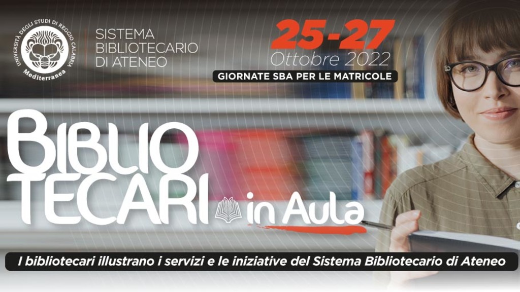 I Responsabili delle Biblioteche di Area e relative Sezioni illustreranno i servizi e le attività del Sistema Bibliotecario di Ateneo agli studenti del primo anno di tutti i corsi di laurea, intervenendo in uno spazio dedicato delle lezioni.