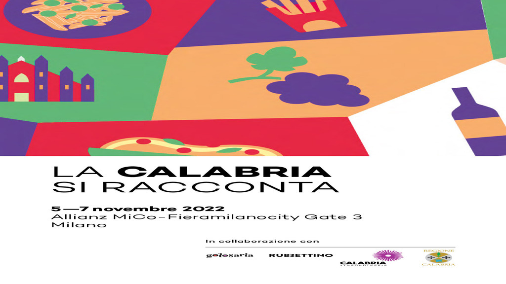 La “Calabria Straordinaria” si racconta e si mette in mostra a Golosaria 2022 con dieci aziende, in un programma ricco di eventi che vedrà la presenza del senatore Fausto Orsomarso, assessore al Turismo e Marketing territoriale della Regione Calabria e di tanti illustri ospiti del mondo della gastronomia e della cultura, insieme al contributo della prestigiosa casa editrice Rubbettino di Soveria Mannelli (Cz).