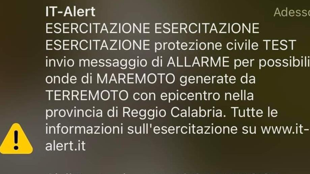 Ha preso il via l’esercitazione “Sisma Stretto 2022”. Come previsto dalle ore 10 i cittadini che si trovano nei comuni costieri di Reggio Calabria e Messina hanno ricevuto sul proprio cellulare un messaggio di prova del sistema di allarme pubblico #ITalert. Nel testo “Esercitazione Protezione Civile” si paventa la possibilità di onde di maremoto generate da un terremoto con epicentro nella provincia di Reggio Calabria.