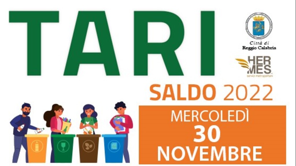 Hermes Servizi Metropolitani. s.r.l. ricorda ai contribuenti che giorno 30 novembre scade il pagamento del saldo Tari 2022. Il saldo è pari al 25 % di quanto dovuto – si legge nella nota - quantificato sulla base dell'importo annuo complessivo. Se il contribuente non riceve l’avviso, può scaricarlo da http://www.hermesrc.it/downloads.aspx