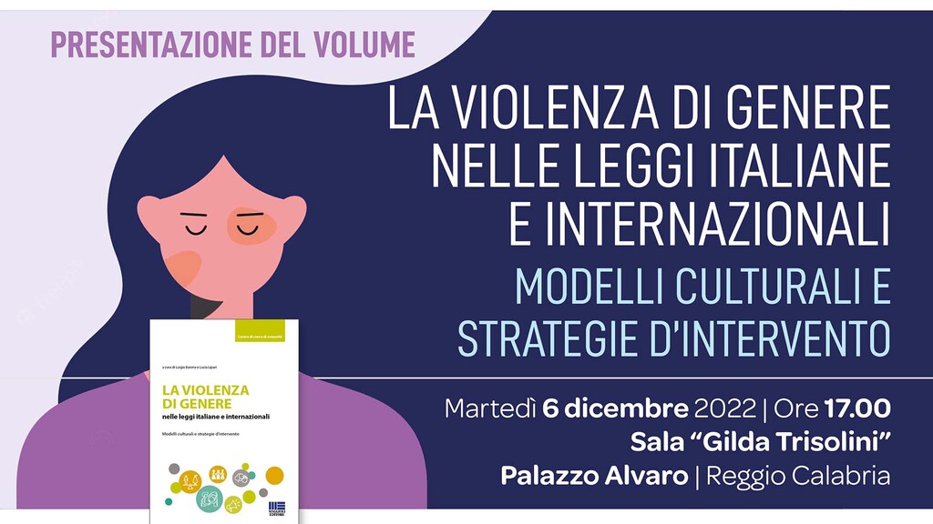 “La violenza di genere nelle leggi italiane e internazionali: modelli culturali e strategie di intervento” è il titolo del volume collettaneo a cura di Luigia Barone e Lucia Lipari, edito da Maggioli, che verrà presentato martedì 6 dicembre p.v., presso la Sala “Gilda Trisolini” di Palazzo Alvaro a Reggio Calabria, alle ore 17:00.