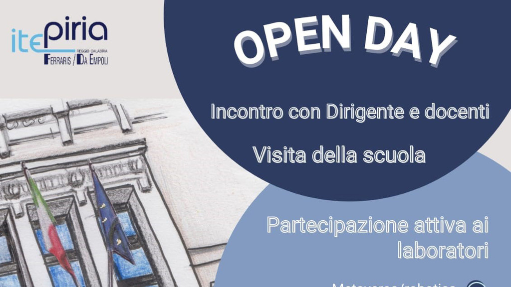 Si terrà sabato 17 dicembre, dalle 15 alle 19, presso la sede dell’Istituto Tecnico Economico “Piria – Ferraris – Da Empoli” di Reggio Calabria, diretto dall’Avv. Anna Rita Galletta, la Giornata dell’Open Day, ossia la scuola aperta ai genitori ed agli studenti dell’ultimo anno della Scuola Secondaria di Primo Grado (più comunemente conosciuta come Scuola Media), per fornire informazioni utili in vista delle imminenti iscrizioni dei propri figli alla Scuola Secondaria di Secondo Grado (quella che, quasi sempre, viene denominata Scuola Superiore).