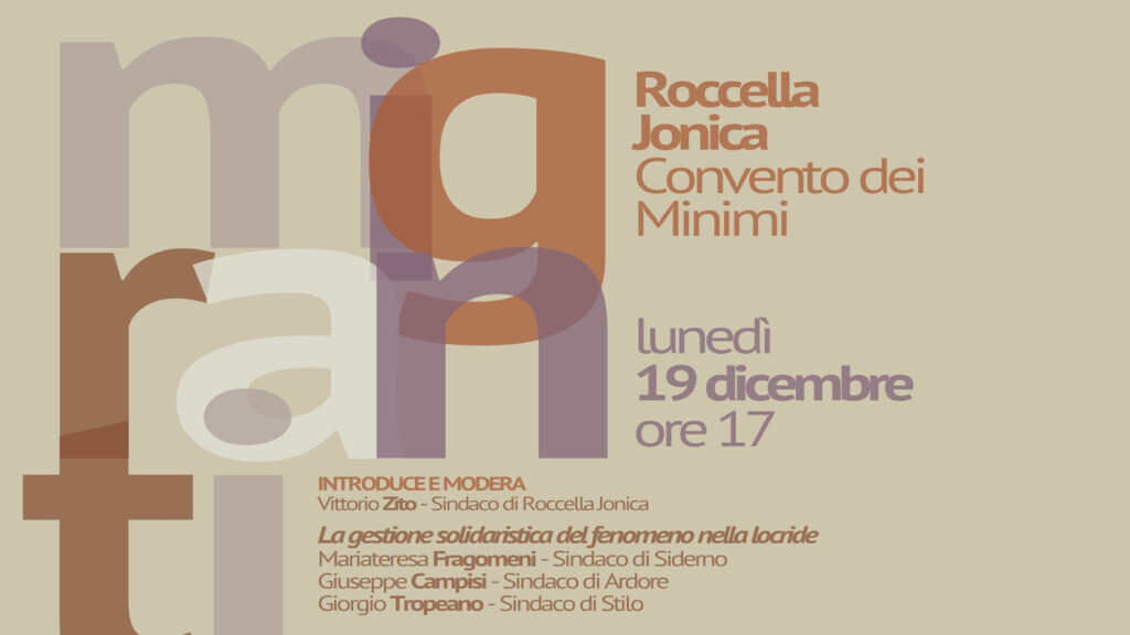 Il prossimo lunedì 19 dicembre alle ore 17.00, al Convento dei Minimi di Roccella, si terrà un incontro dal titolo “migranti-per una gestione straordinariamente ordinaria del fenomeno”.