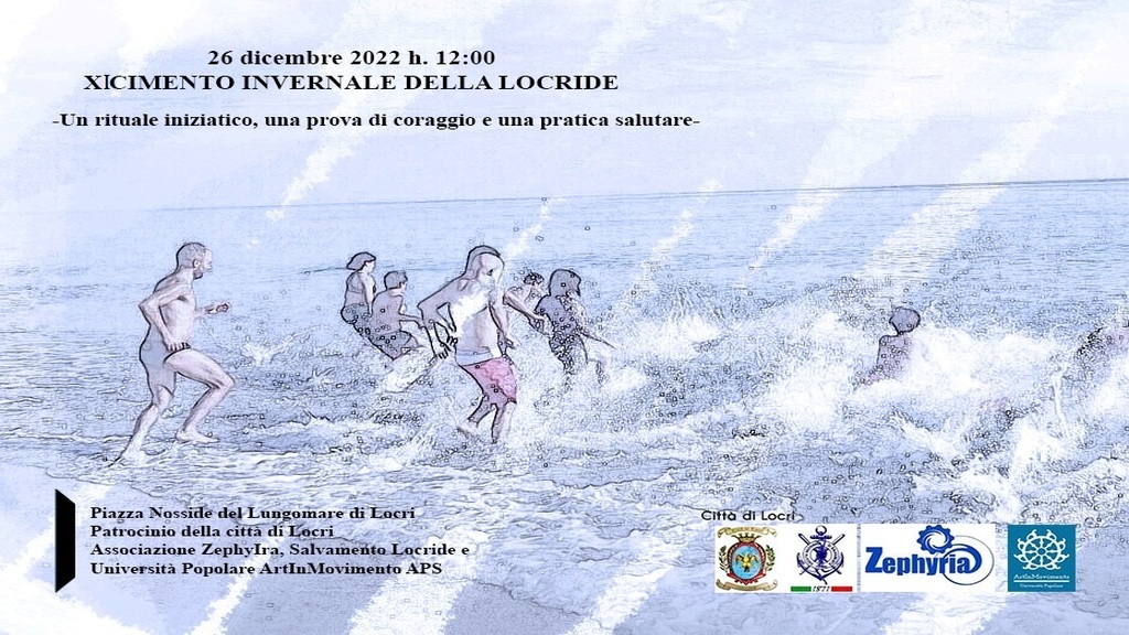 L’Associazione Zephyria e l’Università Popolare ArtInMovimento, in sinergia con la realtà Salvamento Locride Mare, propongono, per lunedì 26 dicembre, alle ore 12.00, all’altezza di Piazza Nosside, sita sul Lungomare di Locri, la decima edizione del Cimento invernale della Locride.