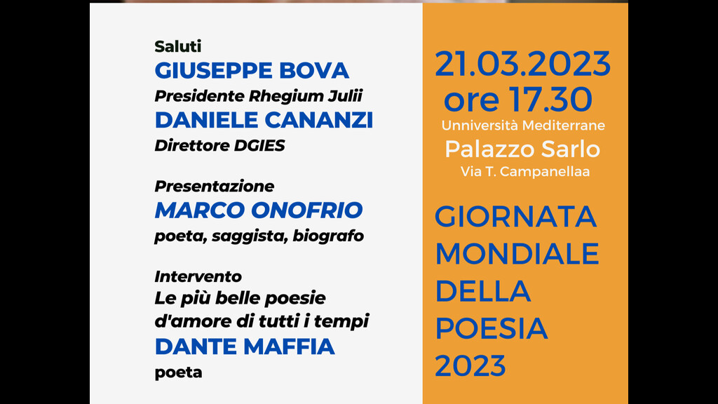 Torna il prossimo 21 marzo la giornata mondiale della poesia dell'Unesco a cui aderisce molto volentieri il Circolo culturale Rhegium Julii.