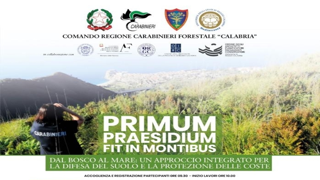 Nella nostra regione, il Comando Regione Carabinieri Forestale “Calabria”, in collaborazione con l’Università degli Studi “Mediterranea” di Reggio Calabria, ha organizzato un convegno dal titolo “Primum praesidium fit in montibus - dal bosco al mare: un approccio integrato per la difesa del suolo e la protezione delle coste”, che si terrà il 22 marzo prossimo, a partire dalle ore 10.00, presso l’Aula Magna “Antonio Quistelli” dell’ateneo reggino.