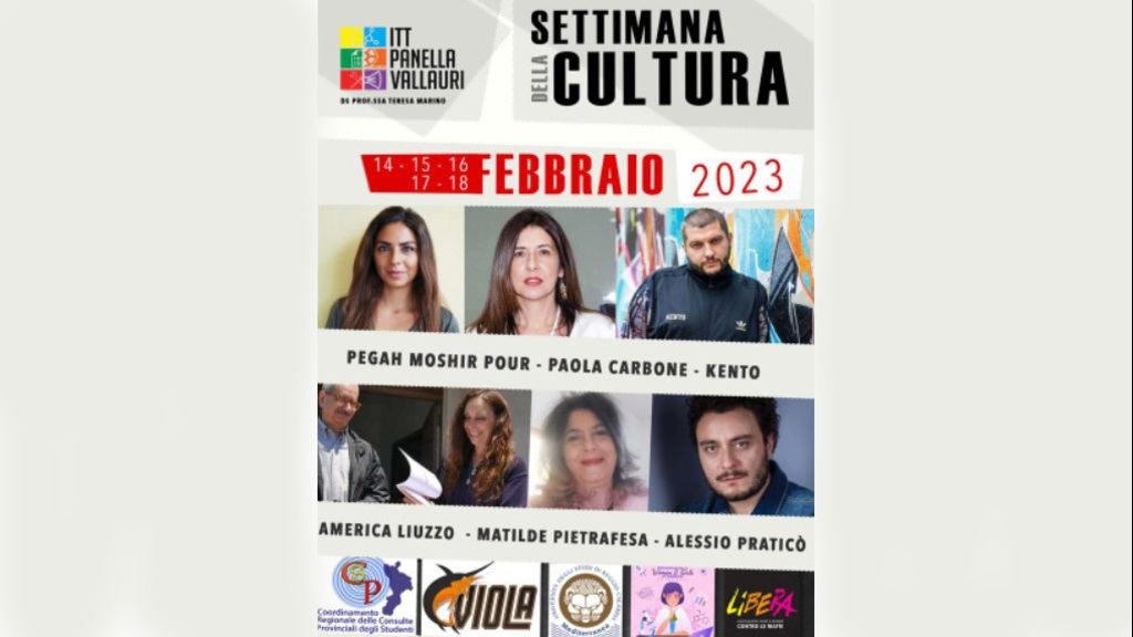 A seguire, l'interessante intervento sul senso della legalità e della giustizia, della Consigliera di Parità della città metropolitana Avv. Paola Carbone e successivamente, nel corso della mattinata, l'incontro con il rapper Kento, divenuto famoso non solo per la sua apprezzabile produzione musicale che affronta importanti tematiche sociali ,ma anche per la sua attività svolta in diversi carceri minorili nei quali insegna ai giovanissimi custoditi ,ad esprimersi attraverso la musica e la scrittura creativa. Nel prosieguo della settimana della Cultura sono state trattate diverse tematiche di interesse degli studenti. Dallo sport, alla musica, alla scienza, al cinema, alla testimonianza valoriale di chi lotta quotidianamente contro la mafia. Il contenitore culturale offerto dall'ITT Panella_Vallauri si è riempito giorno dopo giorno di volti, idee, progetti, esperienze vissute, che hanno certamente lasciato il segno in molti dei presenti.