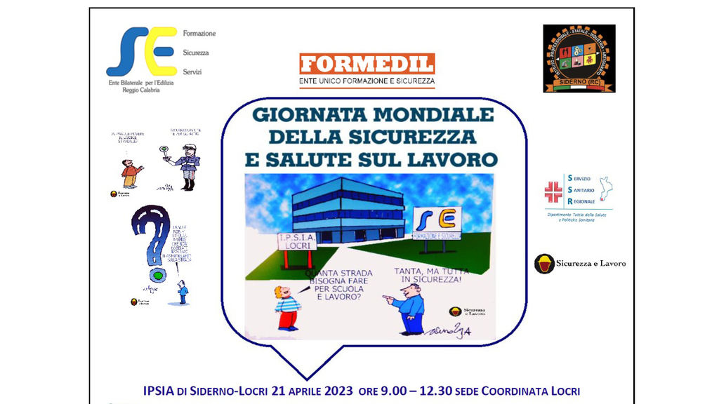 Sicurezza e salute sui luoghi di lavoro, di questo si parlerà venerdì 21 aprile, presso la sede coordinata di Locri dell’Ipsia di Siderno-Locri. L’iniziativa - informa una nota - si inserisce nel novero di quelle organizzate in preparazione della giornata mondiale della sicurezza e della salute sul lavoro e mette in primo piano la necessità di far crescere la cultura della sicurezza sul luoghi di lavoro già dalla scuola, dove si formano studentesse e studenti che saranno le lavoratrici ed i lavoratori di domani.