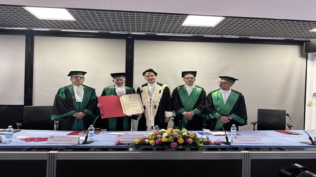 Giorno 12 maggio alle ore 11.00 si è tenuta la cerimonia di conferimento del Dottorato Honoris Causa in Scienze Agrarie, Alimentari e Forestali al dott. Nicodemo LIBRANDI presso l’Aula Quistelli preceduta dalla Laudatio affidata al Prof. Francesco Sunseri e dagli interventi dei Proff. Giovanni Enrico Agosteo, Leonardo Schena e dello studente Girolamo De Giglio Presidente Consiglio degli Studenti.