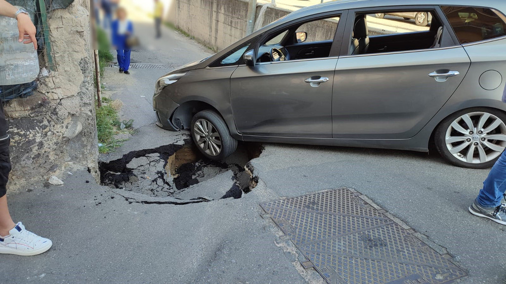 Brutto pomeriggio per un automobilista reggino che si è trovato la macchina sprofondata nell'asfalto in via Lia. Una vera e propria voragine che gli ha bloccato la vettura. Sul posto, immediato l’intervento della Polizia Locale.