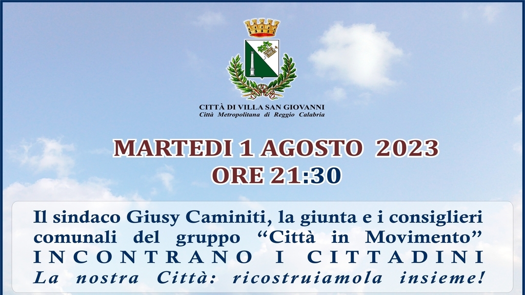 Un appuntamento, come il precedente, che è tappa di un percorso intrapreso volto al confronto continuo con i cittadini sui temi importanti per Villa San Giovanni; un momento di condivisione sulle azioni intraprese finora; un'occasione di dialogo sulle grandi sfide del futuro, dal piano regolatore portuale ai fondi e opere non realizzate del decreto di emergenza ambientale, agli impianti sportivi, passando per l'accordo di programma per Villa città sostenibile ed innovativa nei trasporti e nel turismo; ma anche un confronto diretto sull'ordinario che ci vede impegnati ogni giorno senza soluzione di continuità e che riteniamo richieda un'interazione continua e costruttiva tra cittadinanza e amministrazione, necessaria per la realizzazione di una concreta pratica di cittadinanza.