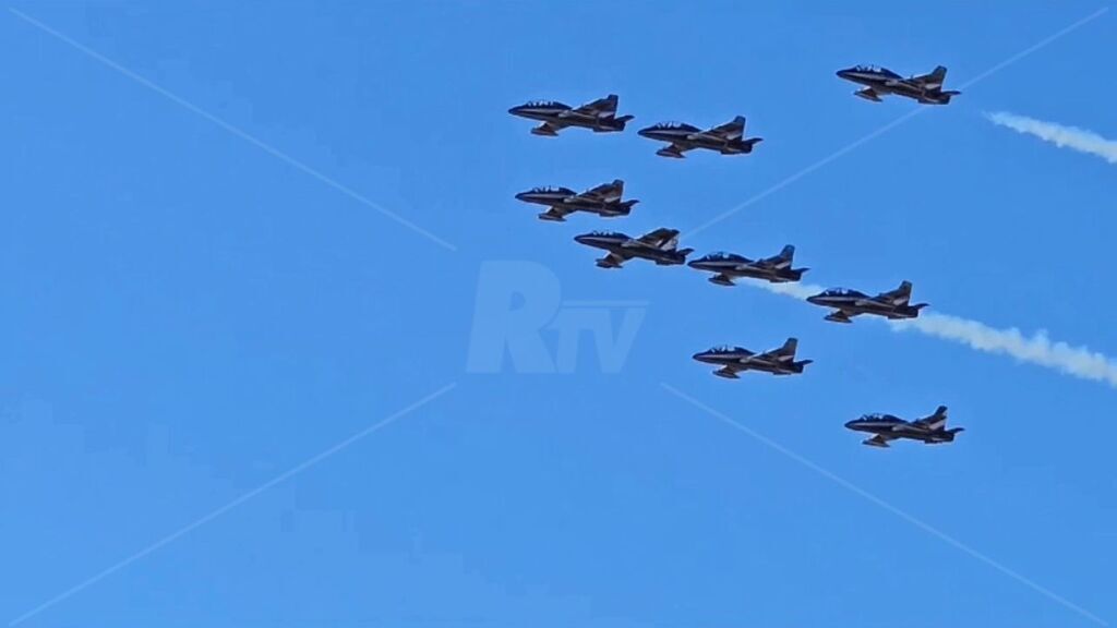 La pattuglia acrobatica delle Frecce Tricolori ha svolto le prove dello spettacolo che andrà in scena domani pomeriggio presso il Lungomare dello Stretto.