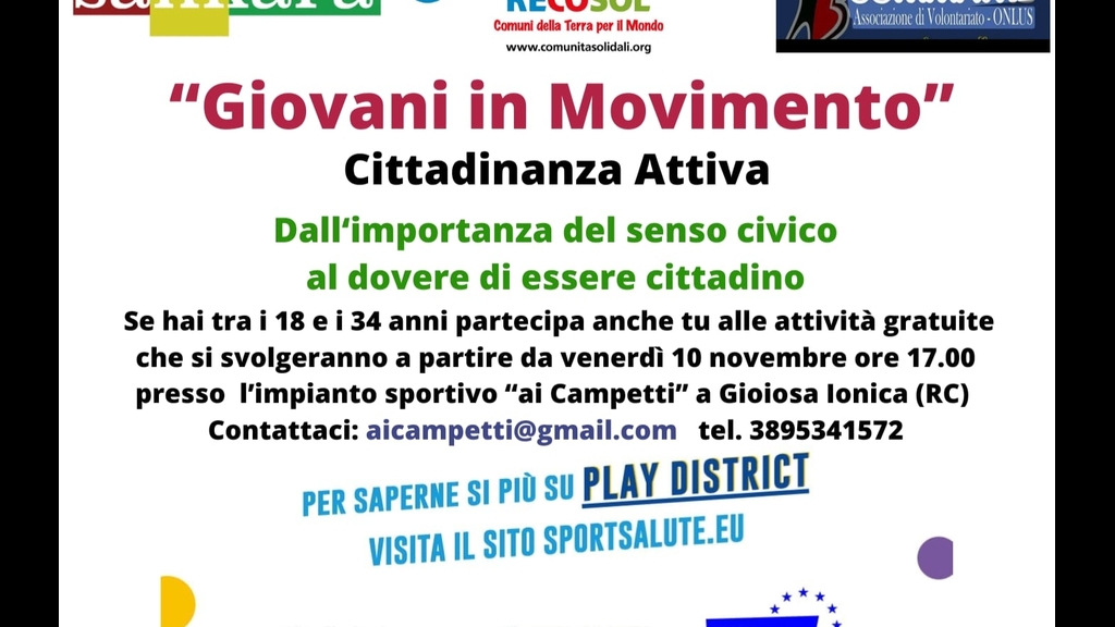 Al via, oggi, una nuova attività del progetto “Giovani in movimento” realizzato dal partenariato che vede capofila l’ASD Sensation insieme all’associazione Tennis Club e ai soggetti del terzo settore del territorio quali la Società Cooperativa Sankara, Recosol, l’associazione Comma tre e il Comune di Gioiosa Ionica. Il progetto è realizzato con i fondi dell’Avviso pubblico per la creazione di spazi civici di comunità per i giovani (c.d. Play district), un’iniziativa promossa dal Dipartimento per le politiche giovanili e il Servizio civile universale della Presidenza del Consiglio dei Ministri in collaborazione con Sport e Salute S.p.A. Dopo l’avvio nel mese di settembre dell’attività sportiva gratuita Padel e del laboratorio “nutrizione e sport”, oggi ha inizio un’altra attività extra-sportiva gratuita e aperta ai giovani dai 18 ai 34 anni di età. Appuntamento alle ore 17:00 presso l’impianto sportivo “Ai Campetti” di Gioiosa Ionica per il laboratorio di “Cittadinanza attiva” questo sarà il cuore dello spazio civico nella sua visione di prospettiva futura. Obiettivo degli incontri è quello di incoraggiare i giovani ad una partecipazione politica attiva e alla vita democratica cominciando dal contesto territoriale locale. Verranno trattate anche tematiche di sostenibilità ambientale al fine di trasmettere ai partecipanti alcune nozioni di educazione civica. Anche gli amministratori locali saranno coinvolti per far sì che il confronto con gli iscritti al progetto possa permettere loro di toccare con mano la vita delle istituzioni. Attraverso il confronto e soprattutto con l’ascolto, si forniranno le risorse necessarie ai giovani per prendere parte alla società. Verranno calendarizzati incontri e focus group in grado di “aprire gli spazi” ai giovani interessati che alla fine del percorso programmato potranno confluire in una Consulta Giovanile ed essere animatori a loro volta dello spazio civico creato. Chi volesse partecipare e diventare parte integrante di questa attività o fosse solo curioso di sapere di più, può iscriversi inviando una email all’indirizzo aicampetti@gmail.com oppure telefonando al 3895341572.