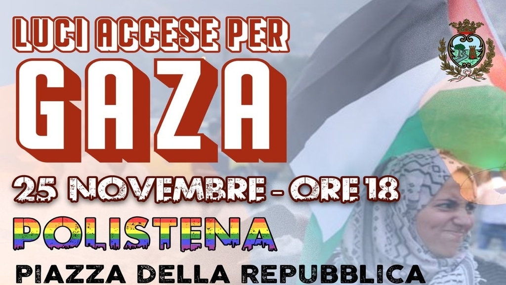 Si svolgerà a Polistena sabato 25 novembre alle ore 18 la manifestazione promossa dall’Amministrazione Comunale e organizzata con la partecipazione delle associazioni polistenesi denominata LUCI ACCESE PER GAZA.