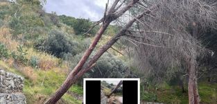 Smottamenti localizzati hanno provocato lo sradicamento di un fusto, che giace sospeso sulla via di transito