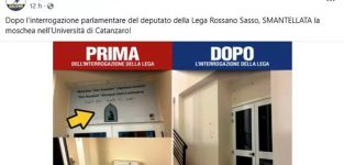 In un post su Facebook le immagini dell’ingresso prima e dopo la rimozione della targa
