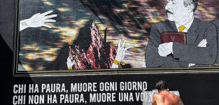 Il murale dell'artista Bruno Salvatore Latella raffigura Giovanni Falcone e Paolo Borsellino come guardiani della giustizia