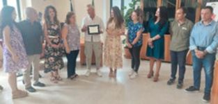Il sindaco Biasi e l’assessore Monteleone consegnano una targa che premia attaccamento ed esempio di collaborazione del personale