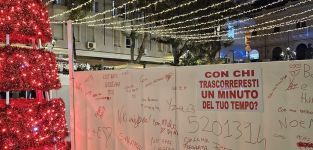 Dietro il cuore led in 3d alto tre metri su un grande telo si cela la scritta ‘Cosa ti manca?’ con attorno centinaia di frasi e pensieri dei giovani reggini
