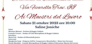 Dal prossimo sabato 21 ottobre la Via Ficarella Traversa II in Saline Joniche sarà ufficialmente intitolata ai “Maestri del Lavoro”