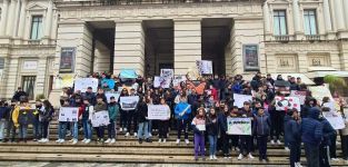 Il sindaco facente funzioni Carmelo Versace ed il Delegato alla Cultura Filippo Quartuccio hanno accolto gli studenti sulla scalinata del Teatro Cilea