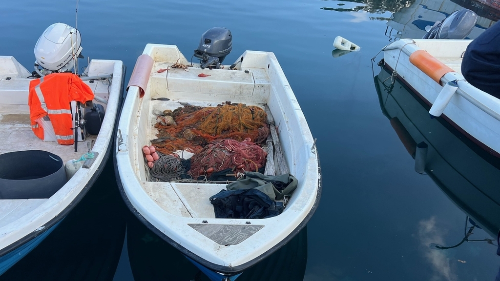 I militari, giunti in porto, unitamente ad un’altra pattuglia della dipendente delegazione di Spiaggia di Palmi e ad una volante della Polizia di Stato, individuavano, anche sulla scorta dei rilievi video-fotografici effettuati dal personale della Motovedetta, i suddetti natanti e procedevano alle verifiche del caso. In particolare a bordo di due dei cinque natanti veniva rilevata la presenza di due attrezzi da pesca professionale ancora bagnati (rete da posta – tremaglio) di dimensioni rispettivamente di 150 e di 60 metri nei quali erano ancora impigliati circa 7 kg di pesce di varia specie. I suddetti attrezzi ed il relativo prodotto ittico venivano posti sotto sequestro e presi in consegna dalla Guardia Costiera.