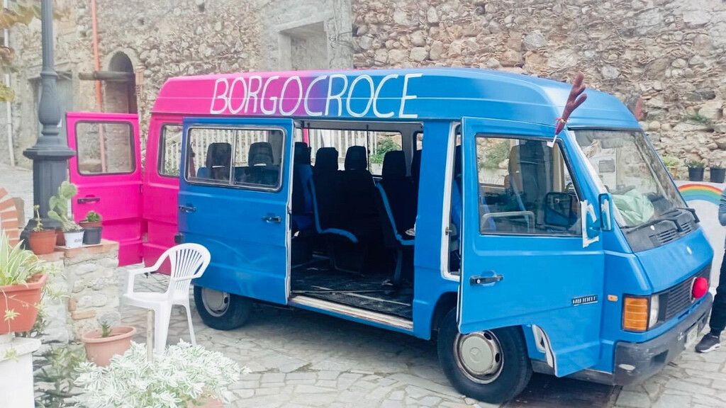 Il furgoncino, uno dei simboli del Borgo, veniva utilizzato come navetta per accompagnare le persone e per le trasferte del Direttivo.