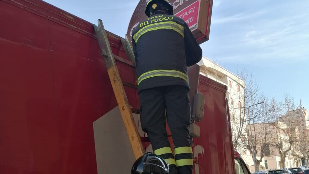 Gli operatori hanno provveduto a mettere in sicurezza l'insegna rimuovendola dalla sua base ormai divelta permettendo, così, al furgone di riprendere la propria marcia. Fortunatamente non si sono registrati feriti.