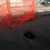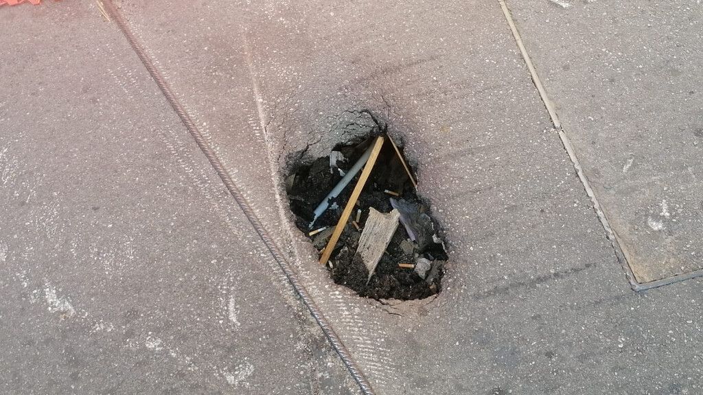 L’area era stata provvisoriamente delimitata, tuttavia da alcuni giorni, per l'intenso transito veicolare e la carreggiata stretta, la delimitazione è stata rimossa, lasciando la buca esposta.