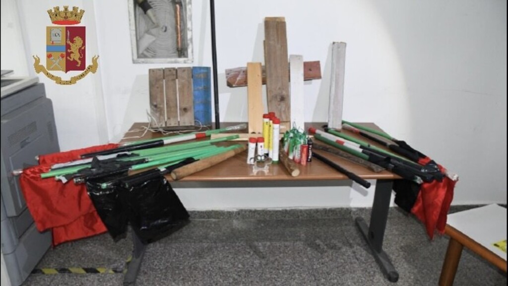 In occasione dell’incontro di calcio valevole per la Coppa Italia di Serie D tra A.S. Reggina 1914 e A.S.D. Nocerina Calcio 1910, disputatosi lo scorso 22 ottobre presso lo Stadio Comunale “Oreste Granillo” di Reggio Calabria, la Polizia di Stato ha sottoposto a sequestro, a carico di ignoti, numerosi ordigni esplosivi artigianali, fumogeni, un tirapugni in metallo e diversi oggetti contundenti, tra cui due bastoni in plastica con anima in ferro, rinvenuti all’interno dell’area di sosta riservata ai sostenitori della squadra ospite ed ivi abilmente occultati.