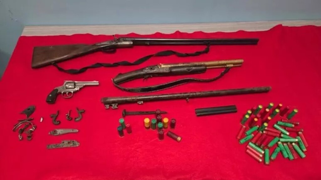 Nel corso di una perquisizione i militari dell'Arma hanno trovato un fucile combinato calibro 16; un fucile doppietta calibro 12 con canne mozzate; una canna di fucile calibro 12; un revolver calibro 38 con matricola abrasa; parti di canna di fucile e diversi meccanismi di arma; 52 cartucce di vario calibro.