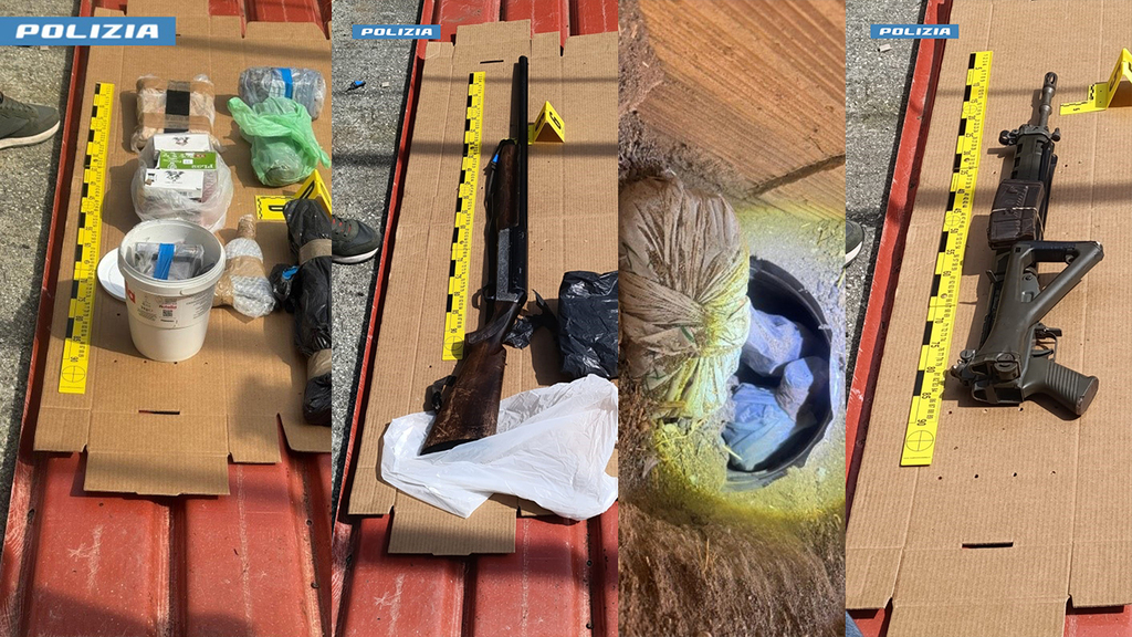 Le attività di scavo eseguite, sotto al coordinamento della Procura della Repubblica presso il Tribunale di Locri, hanno portato complessivamente al sequestro di ben quattro fucili da caccia con matricole obliterate, una carabina calibro 7 mm con matricola abrasa, una carabina ad aria compressa calibro 4,5 mm, un fucile d’assalto calibro 223 mm, una pistola calibro 9x19, vario munizionamento e parti di arma, nonché un panetto di sostanza stupefacente del tipo cocaina dal peso complessivo lordo pari a 1,150 chilogrammi.