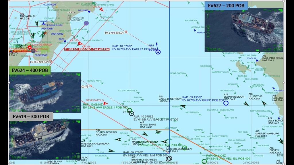 Altre unità della Guardia Costiera - Nave Dattilo e le motovedette SAR CP 326 e CP 325 - stanno prestando soccorso ad altri due barconi con un totale di circa 800 migranti a bordo che si trovano, invece, a circa 100 miglia a SE di Roccella Ionica.