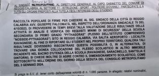 Sono state presentate al Sindaco della città ben 1085 firme con l’istanza di provvedere con somma urgenza all’analisi e alla verifica dei requisiti minimi di sicurezza dell’edificio