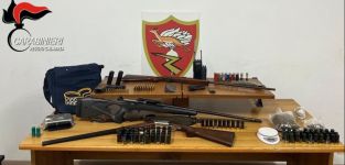 Scoperto un arsenale composto da 3 fucili, 2 pistole, munizioni, polvere da sparo e 200 grammi di marijuana.