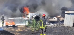Quattro mezzi pesanti e varie attrezzature completamente distrutte
