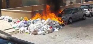 Le fiamme hanno raggiunto anche una vettura parcheggiata nei pressi del cumulo di rifiuti incendiati