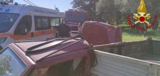 La squadra locale è intervenuta per estrarre dalle lamiere due persone rimaste incastrate all'interno della propria autovettura, che era andata ad impattare con un mezzo pesante