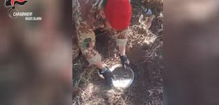 All’interno di alcuni fusti in plastica occultati nel terreno vi erano più di 30 kg di hashish e più di un kg e mezzo di cocaina
