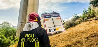 Il tir avrebbe perso il controllo per cause ancora in corso di accertamento, sfondando le barriere laterali e finendo la sua corsa nel vuoto