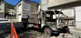 Il mezzo di un'impresa di Catanzaro impegnata nei lavori di adeguamento e miglioramento della rete idrica comunale