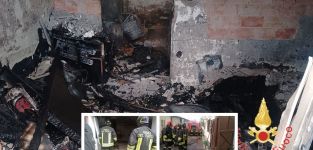 I Vigili del fuoco hanno soccorso il ferito che insieme a moglie e figlia si era rifugiati sul balcone per scappare dalle fiamme