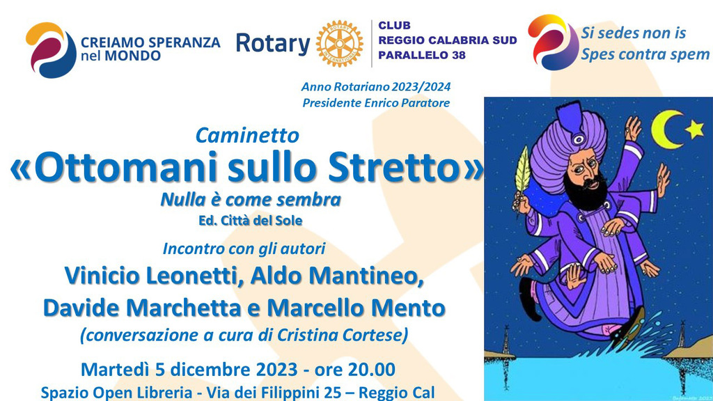 Vinicio Leonetti, Aldo Mantineo, Davide Marchetta, Marcello Mento, sono quattro ex cronisti della Gazzetta del Sud, che hanno lavorato nelle redazioni di Sicilia e Calabria, sono gli autori di “Ottomani sullo Stretto”, edito da Città del Sole Edizioni, una raccolta di otto racconti, tra realtà e fantasia, scritti tutti sulle sponde dello Stretto, dove “nulla è come sembra”, che è, non a caso, il sottotitolo del libro. “I taccuini dei cronisti attempati sono di carta, piccoli e scritti a mano. Le notizie che contengono non vengono scaricate tutte per diventare articoli sui giornali. Quel che resta, gli avanzi, non viene considerato meritevole di entrare nel pezzo da pubblicare; ma a volte quelle cose inappropriate entrano nella memoria del giornalista e restano archiviate per decenni nelle ram di tanti operai della parola”. Verrà presentato questa sera, alla presenza degli autori, alle ore 20.00, presso la libreria Spazio Open Libreria- Via dei Filippini 25.