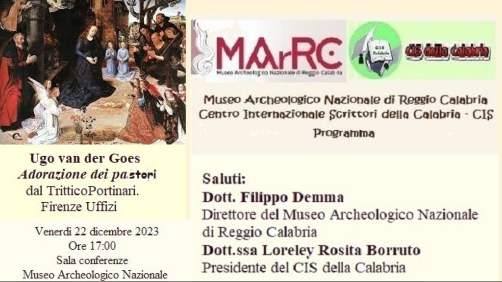 Nell’ambito del ciclo “I grandi protagonisti dell’arte: architettura, pittura e scultura, venerdi 22 dicembre 2023, alle ore 17:00 nella sala conferenze del MArRC, lo stesso Museo e il Centro Internazionale Scrittori della Calabria promuovono il quarto incontro “La natività nella pittura fiamminga XV e XVI secoli”. Aprono l’incontro gli interventi di Filippo Demma, direttore del MArRC e di Loreley Rosita Borruto, presidente del Cis della Calabria. Con il contributo di slides, relaziona Francesca Paolino, già prof. associato di Storia dell’Architettura Università Mediterranea di Reggio Calabria, componente del Comitato Scientifico del Cis. Il Rinascimento non è stato solo un fenomeno italiano, questo movimento artistico si è diffuso anche nei territori delle Fiandre, oggi regione al Nord del Belgio. Un esempio notevole di pittura fiamminga della natività del XV secolo è l'opera "La natività di Giovanni di Eyck", dipinta nel 1420 da Jan van Eyck. Questo dipinto è noto per i suoi dettagli realistici, infatti la natività nella pittura fiamminga dei secoli XV e XVI è caratterizzata da un'attenzione particolare per i dettagli, una ricerca della verosimiglianza e una cura per la rappresentazione dei personaggi sacri. Gli artisti fiamminghi lavoravano con una grande precisione, cercando di rendere ogni dettaglio, sia nella figura umana che nella natura circostante.Nel XVI secolo, la pittura fiamminga della natività mostra uno sviluppo stilistico e concettuale. Gli artisti iniziarono a sperimentare con nuovi modi di rappresentare la natività, utilizzando luci e ombre per creare effetti drammatici e emotivi.Un esempio significativo di pittura della natività fiamminga del XVI secolo è "La natività" di Pieter Bruegel il Vecchio, dipinta nel 1564. Questo dipinto è caratterizzato da una vivace composizione e da una grande attenzione per i dettagli naturalistici. Per il suo stile realistico, dettagliato e coinvolgente, agli artisti delle Fiandre, locali o stranieri che fossero, non mancarono mai incarichi e committenze.